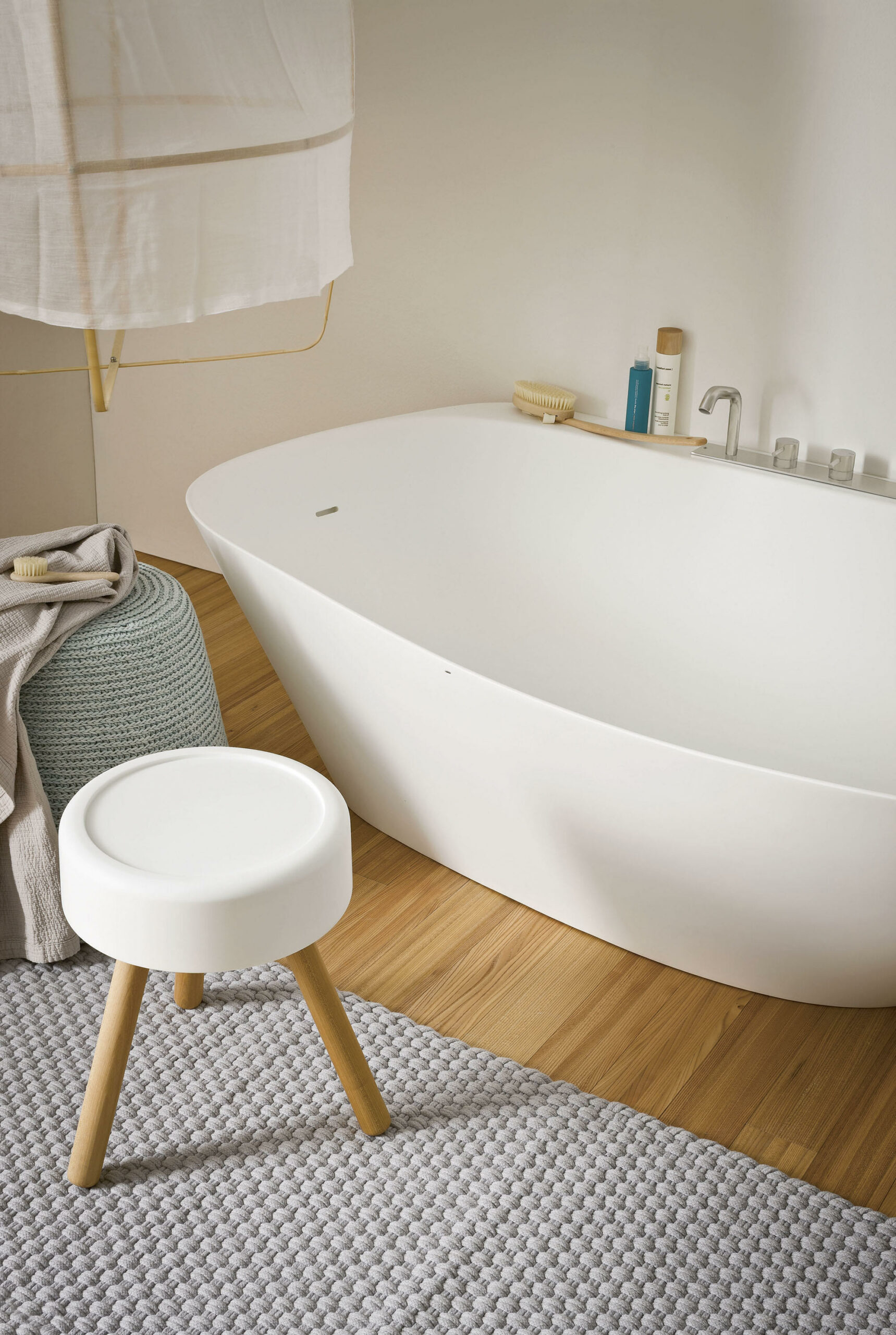 Koleksiyonun öne çıkan parçalarından biri olan Fonte Küvet, bağımsız (freestanding) yapısı ile dikkat çeker. Bu özellik, küvetin herhangi bir duvara monte edilmeden odanın içinde serbestçe yerleştirilebilmesini sağlar. Korakril™ malzemeden üretilen bu küvet, 175 cm uzunluğunda ve 96 cm genişliğindedir, bu da kullanıcıya geniş bir banyo alanı sunar. Modern banyolarda merkezi bir unsur olarak öne çıkan bu küvet, zarafet ve fonksiyonelliği bir araya getirir.