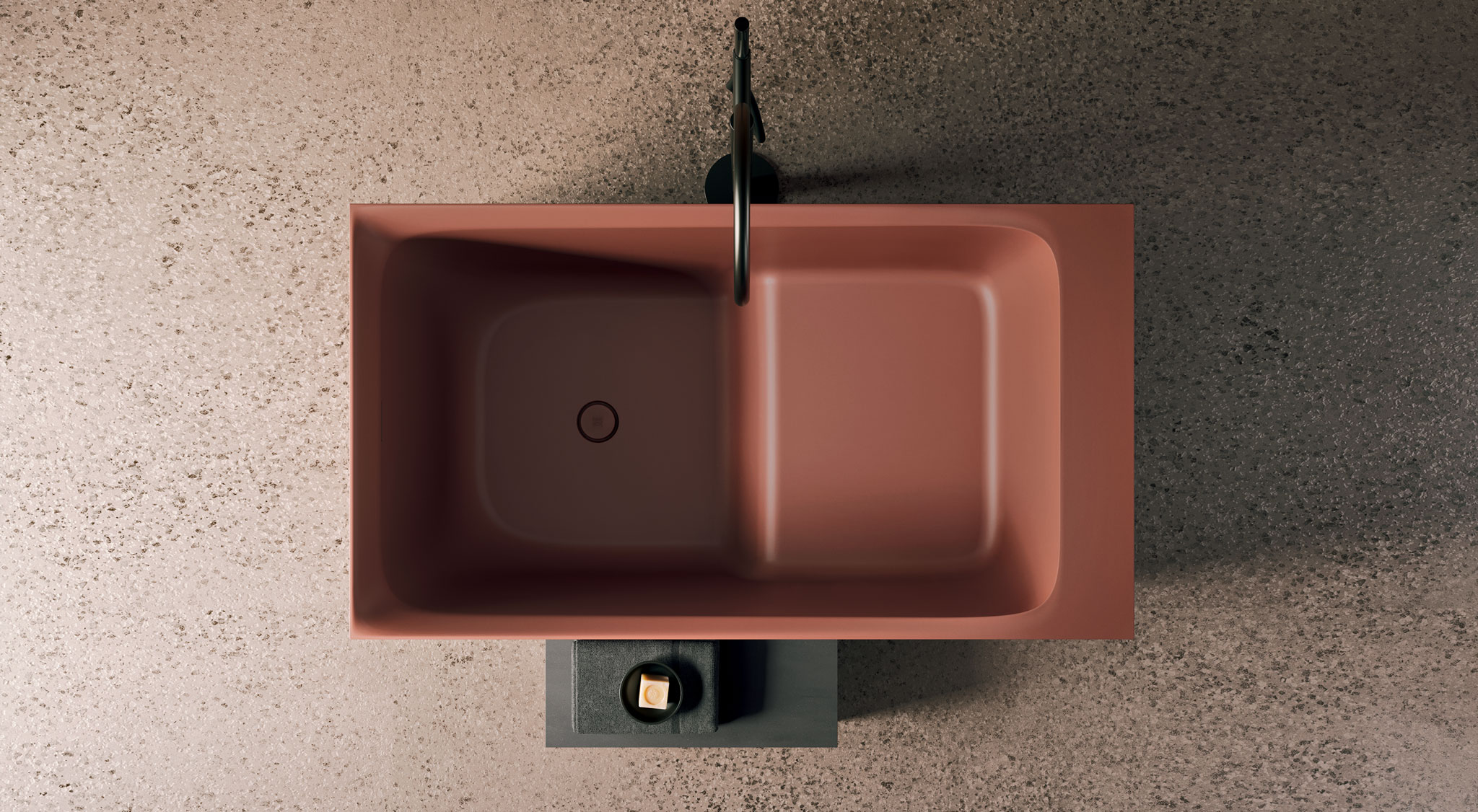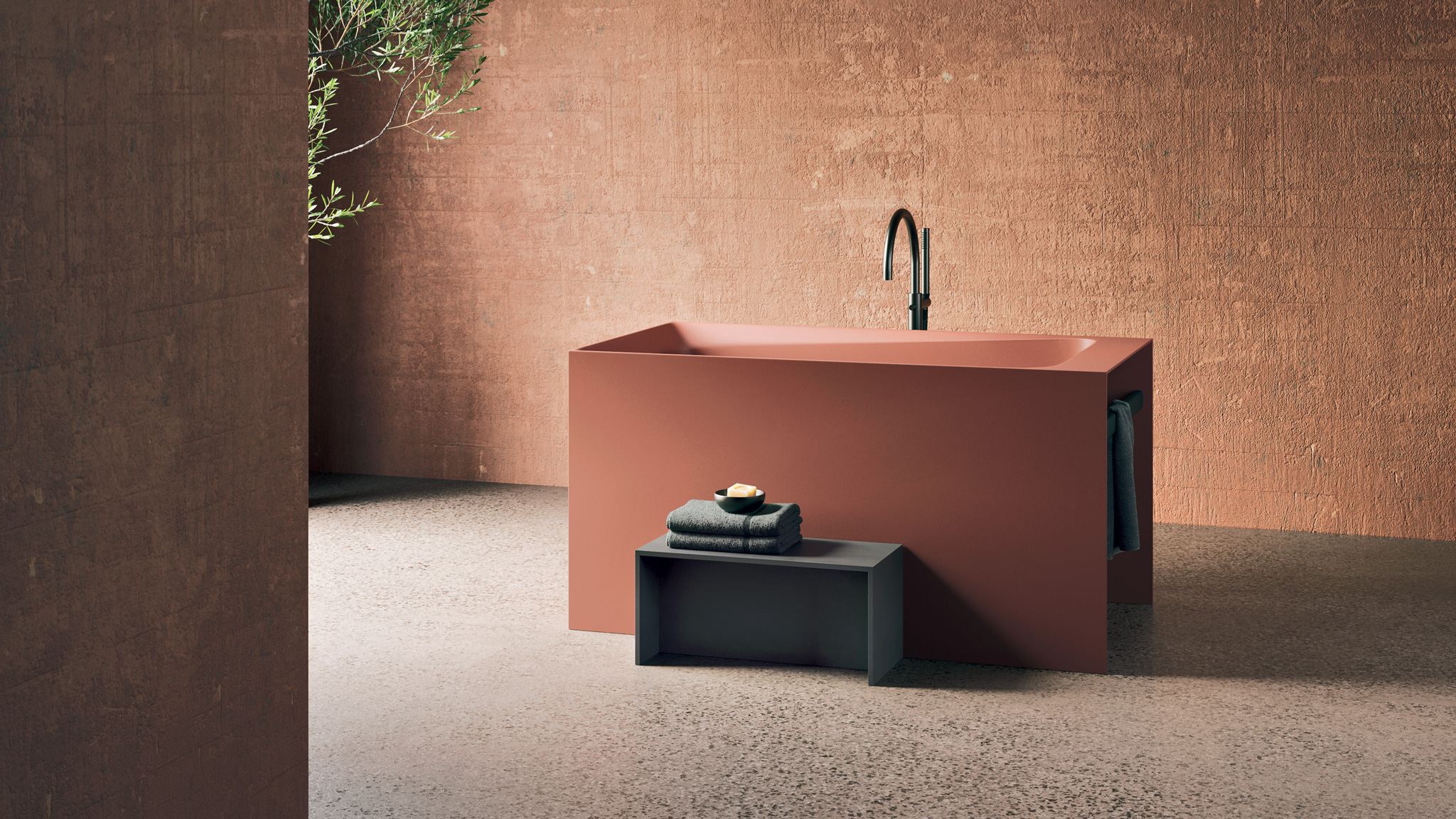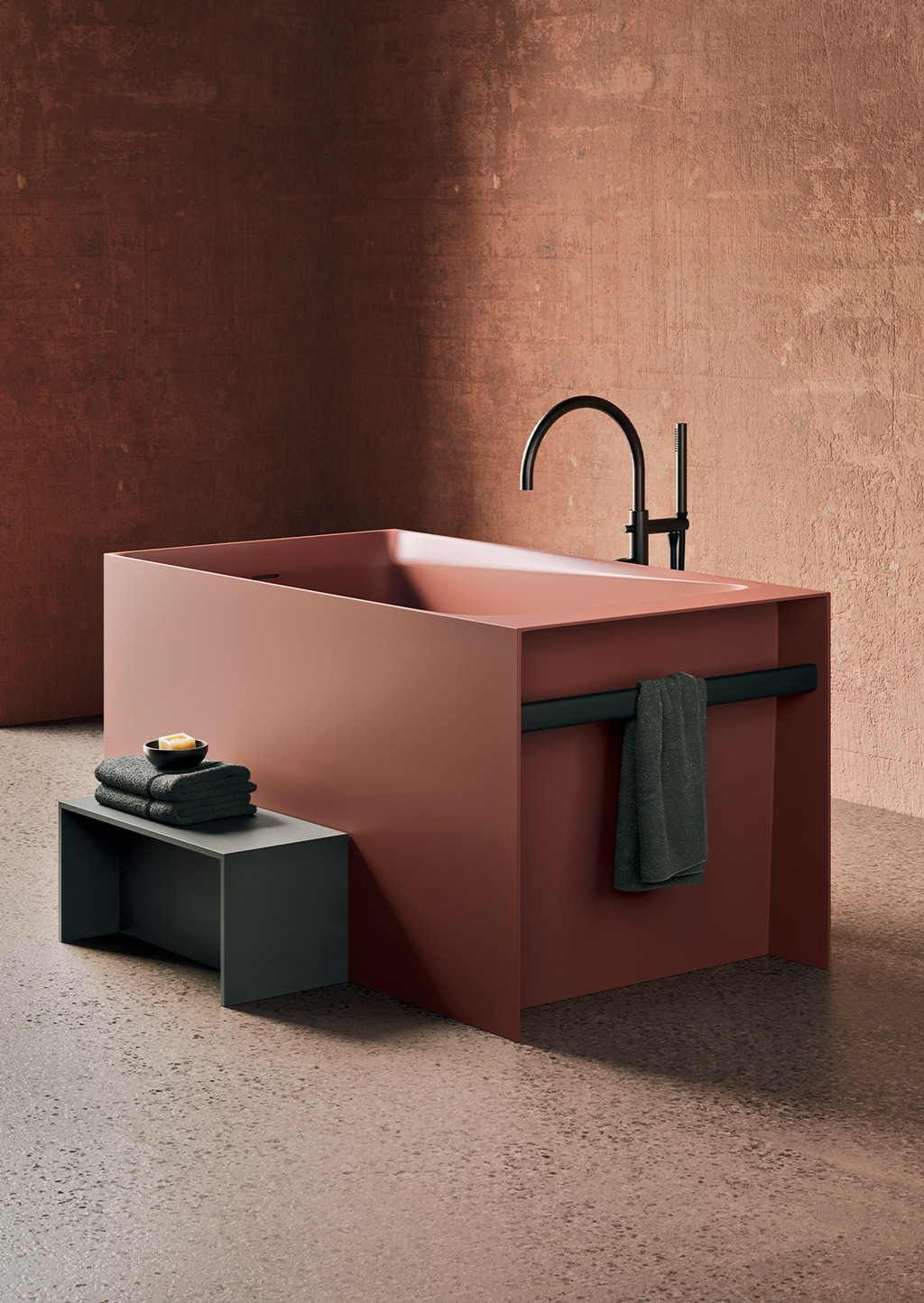 Zen küveti, Shark ve Korakril™ gibi dayanıklı malzemelerden üretilmiştir. Yeni tanıtılan Rosso Argilla rengi, sıcak ve davetkâr bir atmosfer yaratır.
